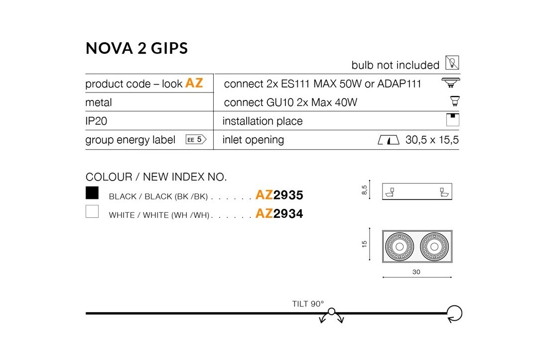 Azzardo NOVA 2 GIPS WHITE/WHITE 2934