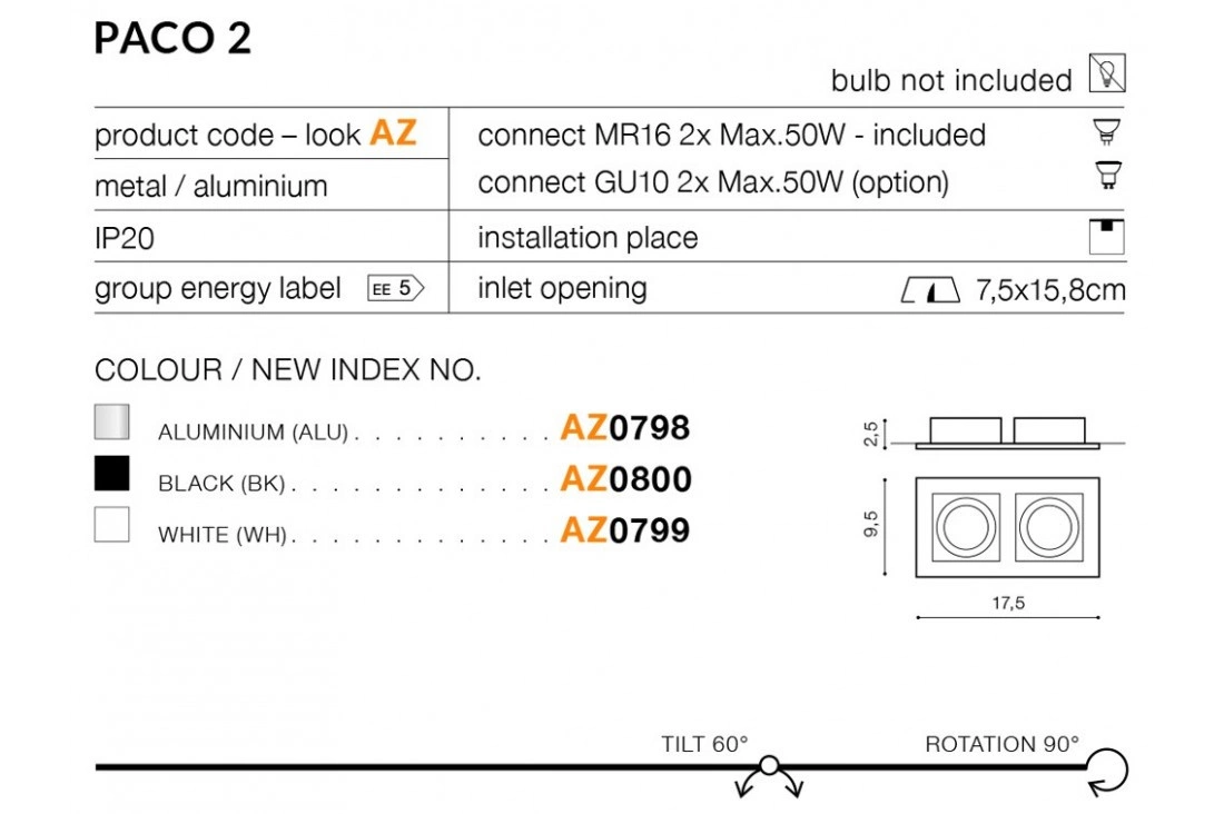 Azzardo PACO 2 ALUMINIUM 798
