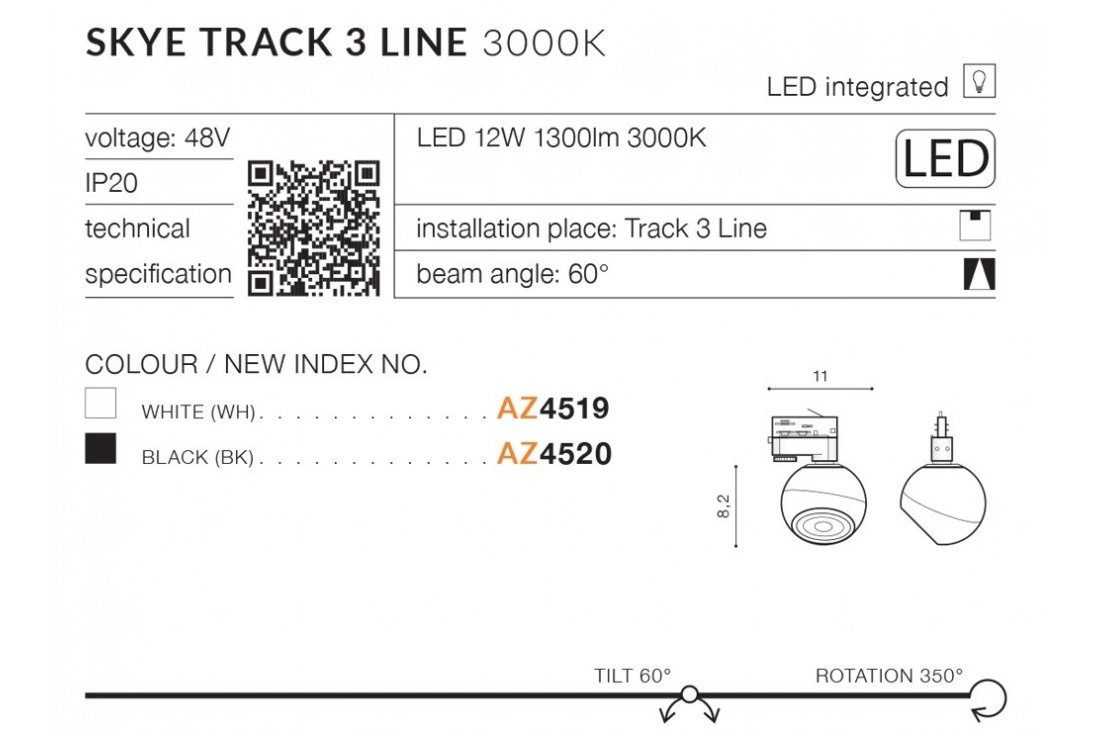 Azzardo SKYE TRACK 3LINE 12W 3000K WH 4519