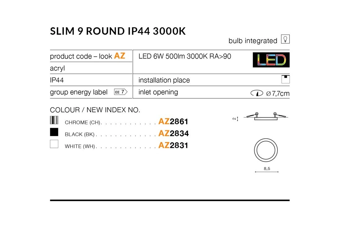 Azzardo SLIM 9 ROUND 4000K IP44 BLACK 2835