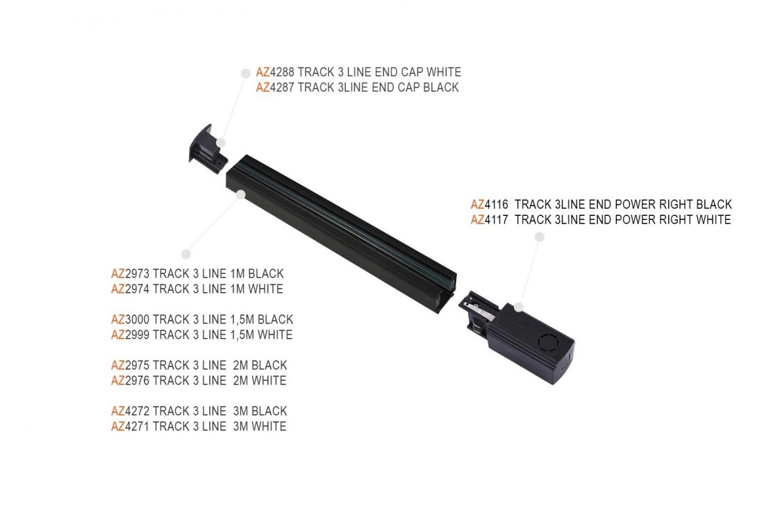 Azzardo TRACK 3LINE SET 1M + END POWER + END CAP WHITE 2991