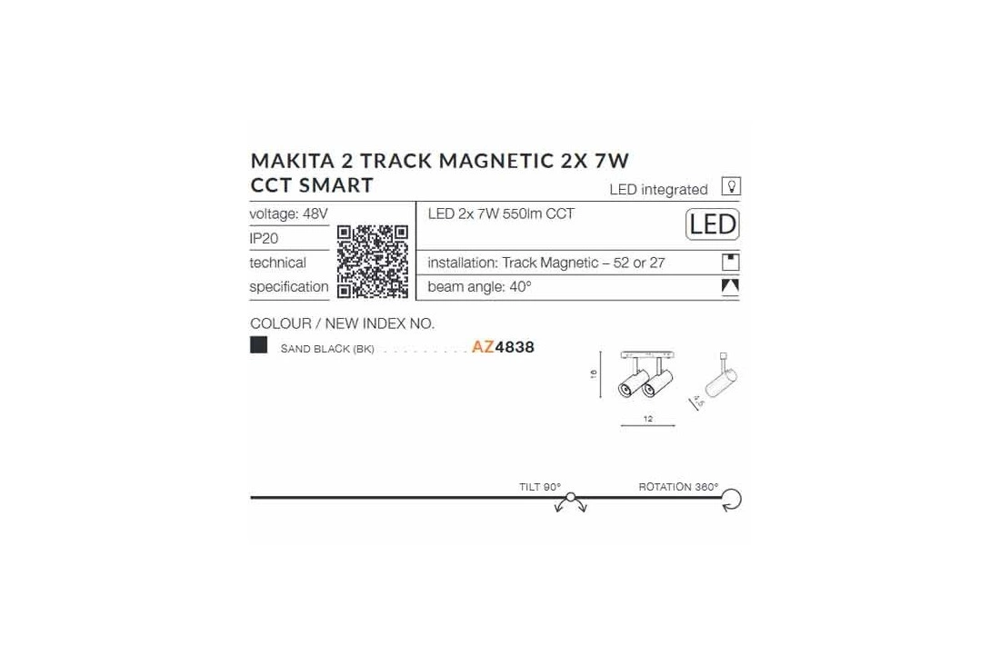 Azzardo ALFA MAKITA 2 TRACK MAGNETIC 2x7W CCT BLUETOOTH BK 4838