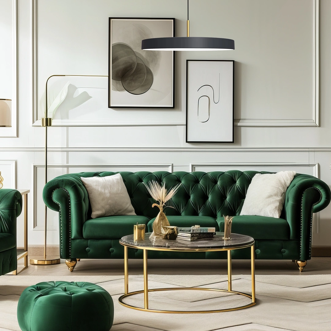 Przedstawiamy lampę DISC, która zachwyca swoim wyjątkowym designem. Oświetlenie łączy matową czerń z eleganckim złotym połyskiem, tworząc harmonijną kombinację kolorów, która nadaje pomieszczeniu wyjątkowy charakter. Wykonana z metalu i akrylu, lampa DISC emanuje nowoczesnością i stylem. Jej minimalistyczna forma i elegancka linia sprawiają, że doskonale wpisuje się w różnorodne aranżacje wnętrz, od nowoczesnych po bardziej klasyczne. Lampa DISC stanie się centralnym punktem każdego pomieszczenia, dodając mu nowoczesnego i eleganckiego wyglądu. Dzięki swojej unikalnej konstrukcji, lampa ta nie tylko oświetla, ale również pełni funkcję dekoracyjną, wprowadzając do wnętrza wyrafinowany akcent. Idealna do salonu, jadalni czy sypialni, lampa DISC wprowadza subtelność i wyrafinowanie, które podkreślają indywidualny styl i charakter wnętrza.