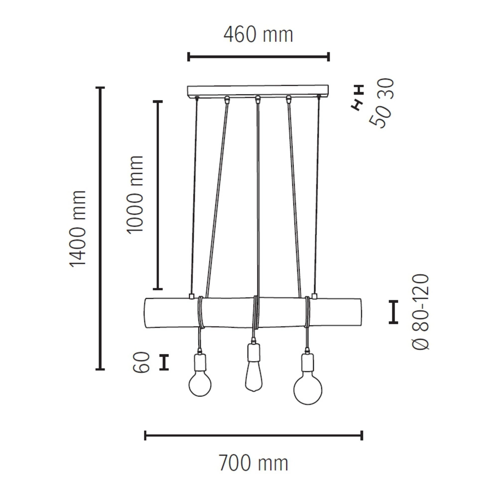Trabo Short Lampa Wisząca 3xE27 Max.60W Sosna Bejcowana/Czarny 68304304