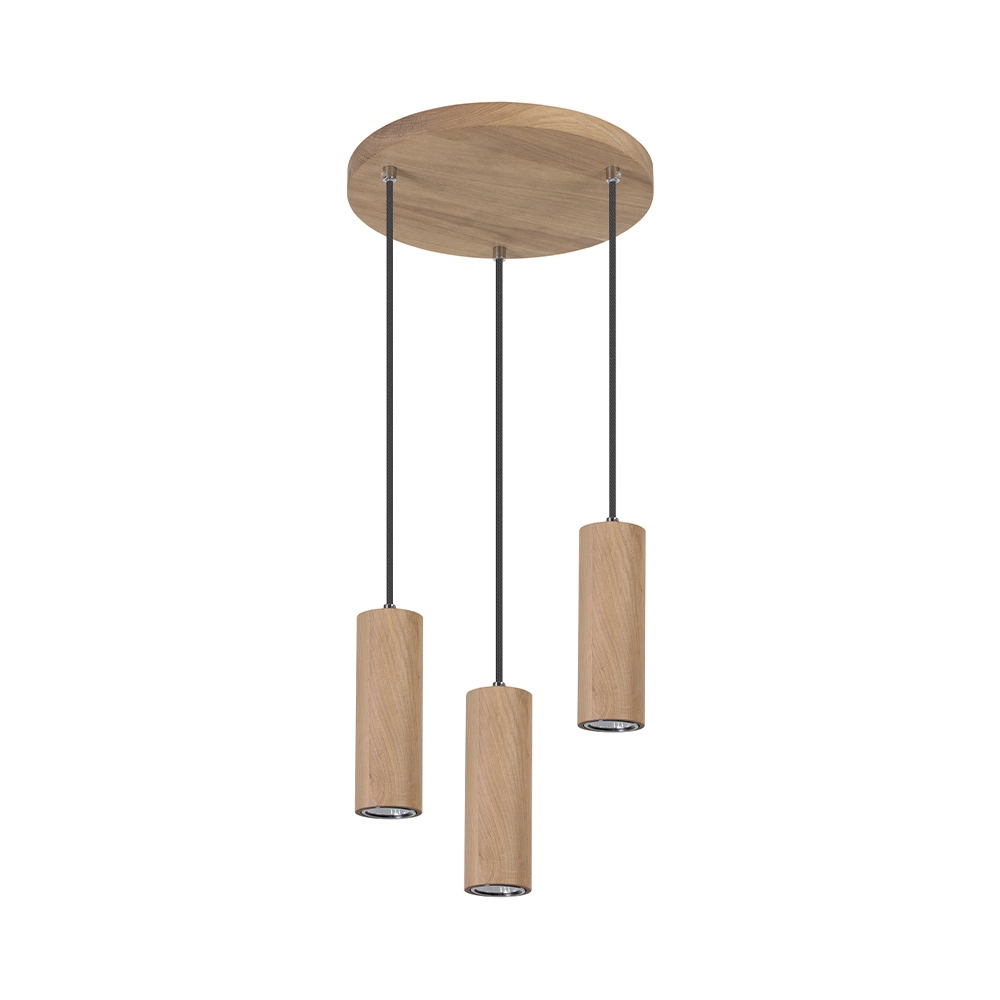 Lampa wisząca Pipe z trzema źródłami GU10 LED o mocy 5W to perfekcyjne rozwiązanie dla osób, które szukają zarówno funkcjonalnego, jak i estetycznego oświetlenia, Jej elegancka konstrukcja z olejowanego dębu w połączeniu z antracytowym kablem w oplocie tworzy nowoczesny i stylowy wygląd, Idealna do dużych przestrzeni takich jak jadalnie, kuchnie czy przestronne salony, lampa Pipe zapewnia intensywne i równomierne oświetlenie, które wprowadza do wnętrza elegancję i komfort, Dzięki swojemu nowoczesnemu designowi, lampa ta będzie nie tylko funkcjonalnym źródłem światła, ale także efektownym elementem dekoracyjnym,