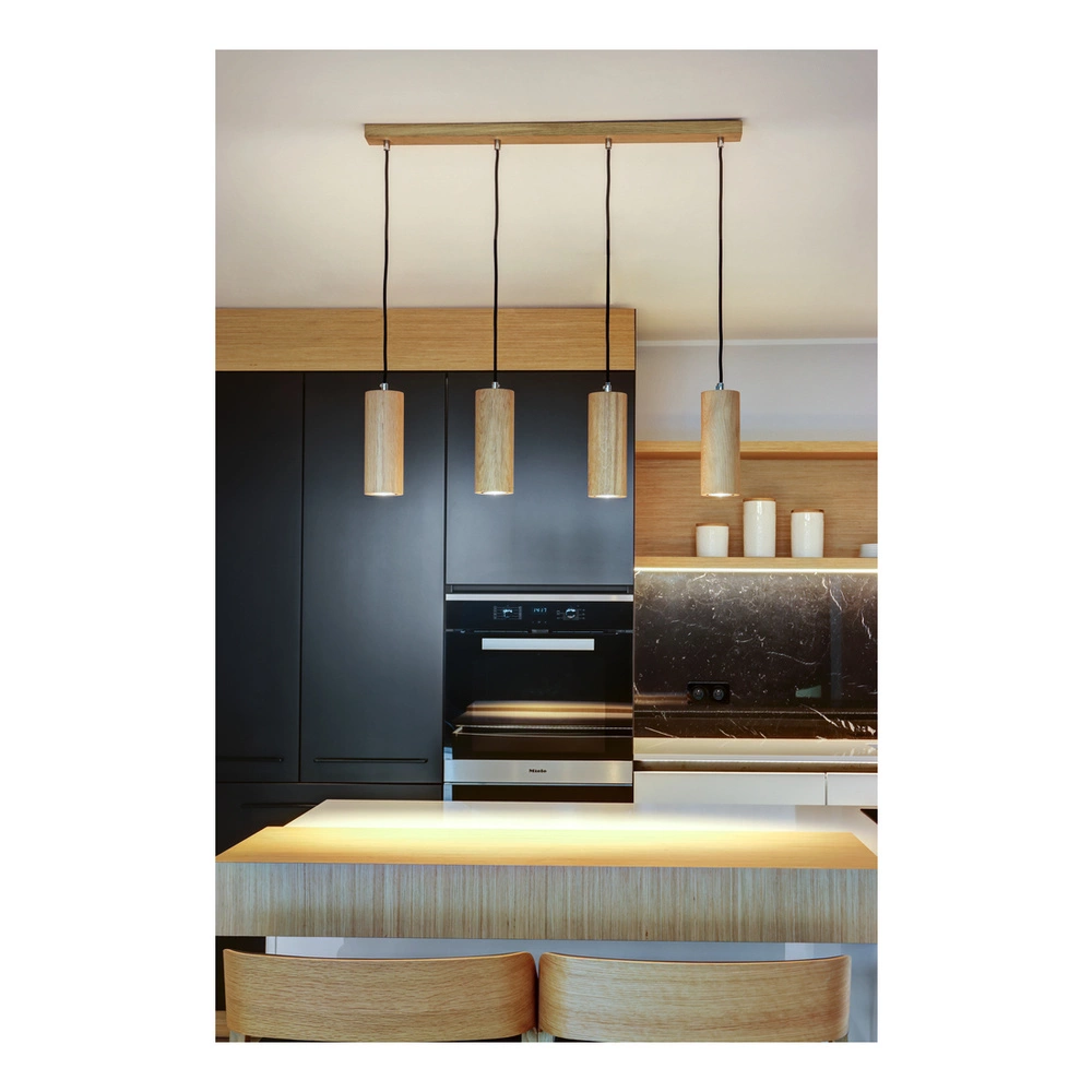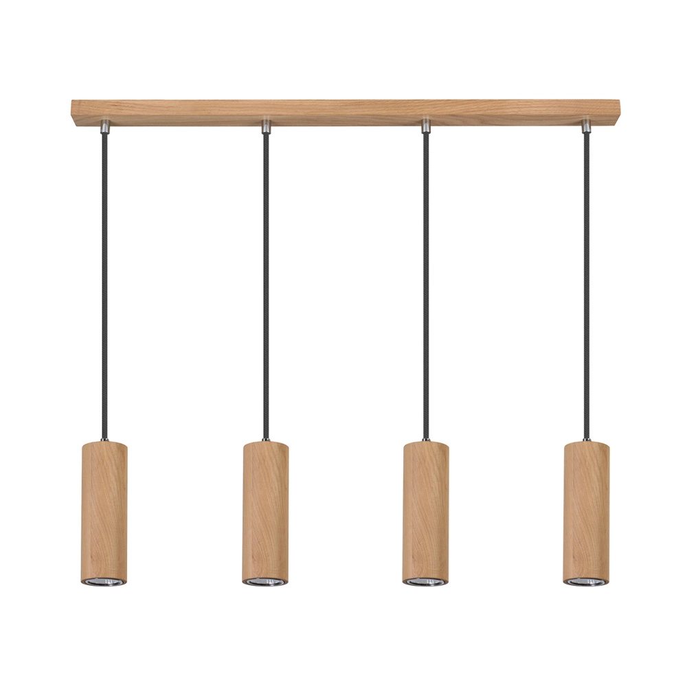 Lampa wisząca Pipe z czterema źródłami GU10 LED o mocy 5W to doskonały wybór dla osób poszukujących intensywnego i efektownego oświetlenia, Jej nowoczesny design z olejowanego dębu oraz antracytowy kabel w oplocie tworzą harmonijną całość, która wprowadza do wnętrza elegancję i styl, Idealna do dużych przestrzeni takich jak jadalnie, kuchnie czy open space, lampa Pipe zapewnia mocne, równomierne światło, które doskonale oświetli każdy zakątek, Jej atrakcyjny wygląd i wysoka funkcjonalność sprawiają, że jest idealnym dodatkiem do nowoczesnych aranżacji,