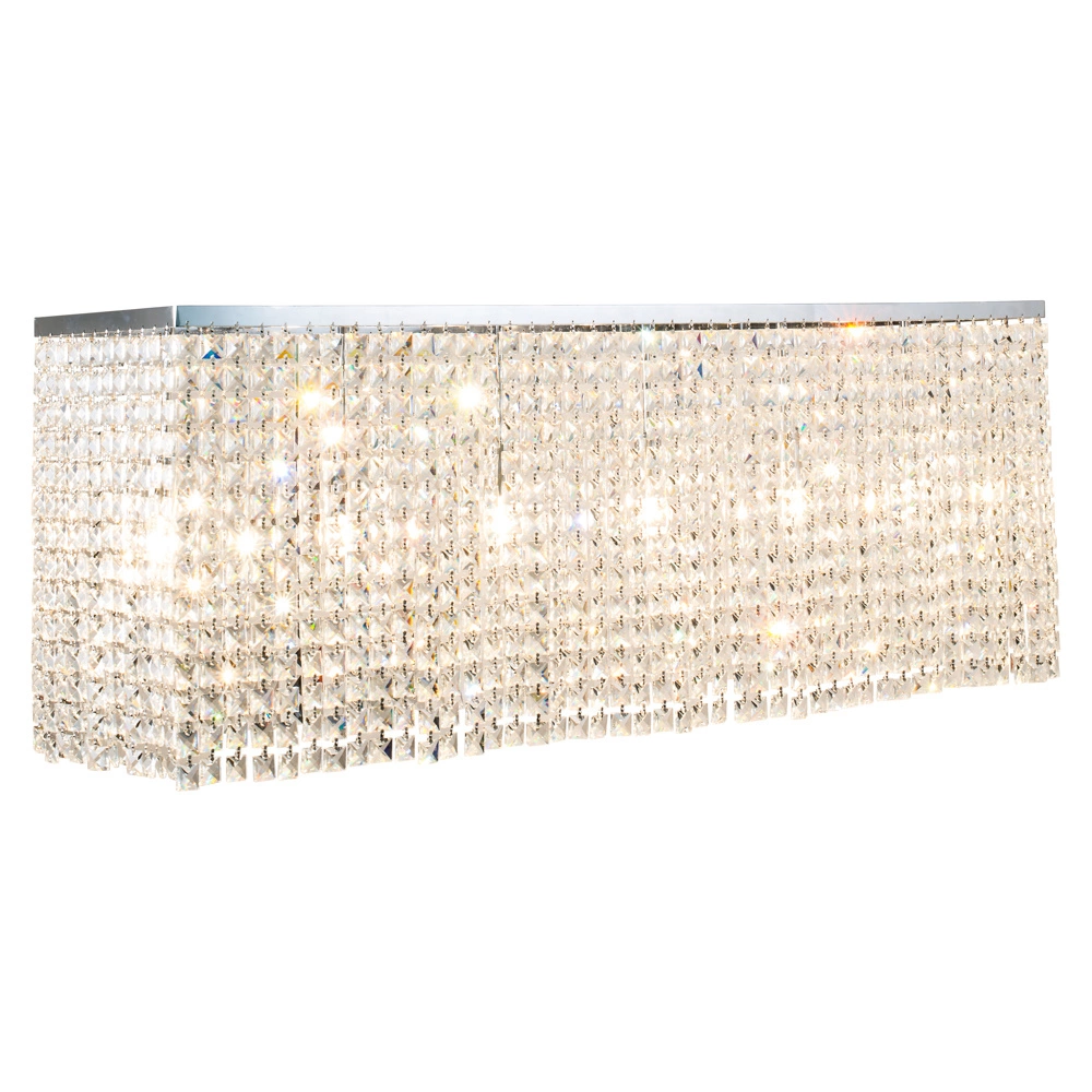 Elegancka i nowoczesna lampa sufitowa Euphoria z sześcioma źródłami światła E14 to doskonały wybór do przestronnych wnętrz, Chromowane metalowe wykończenie i transparentne kryształy tworzą luksusowy design, który dodaje blasku i elegancji każdemu pomieszczeniu, Sześć źródeł światła E14 o mocy 40W każda zapewnia intensywne, równomierne oświetlenie, które subtelnie rozprasza się przez kryształy, tworząc efektowne refleksy i elegancką atmosferę, Euphoria łączy nowoczesny styl z funkcjonalnością, oferując wyjątkowe oświetlenie,