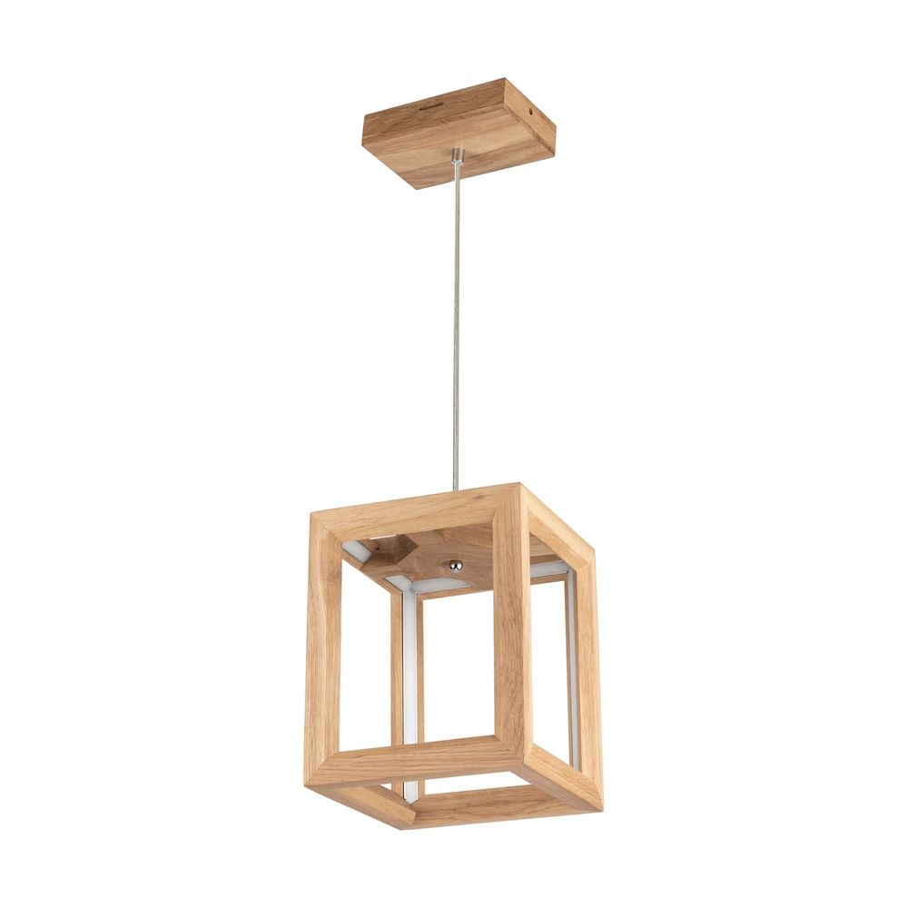 Oprawy oświetleniowe LED Kago to wspaniały przykład designu przywołującego na myśl drewniane klatki lub szkielet o geometrycznych kształtach, takich jak sześciany i pryzmaty. Projektantowi rodziny lamp Kago wyraźnie zależało na stworzeniu elementów wpisujących się w minimalistyczny i geometryczny styl, a jednocześnie w duchu ekologii, dzięki zastosowaniu wysokiej jakości materiałów i zaawansowanej technologii LED 24V. Seria Kago LED obejmuje lampy wiszące dostępne w trzech rozmiarach, a także ich odpowiedniki montowane na suficie. Kolekcję uzupełnia uroczy kinkiet ścienny, oferujący wszechstronne opcje odpowiadające różnym potrzebom oświetleniowym. Podobnie jak rodzina Ramme, lampy Kago są wykonane z najwyższej jakości drewna dębowego, posiadającego certyfikat FSC® w zakresie zrównoważonego rozwoju. Drewno jest poddawane minimalnej obróbce w celu zachowania jego naturalnego piękna, słojów i ciepłego charakteru, a także poddawane specjalnym wykończeniom zapewniającym trwałość i odporność na starzenie, zachowując elegancję przez wiele lat. Moduły LED 24 V stosowane w tych oprawach są znane za ich wyjątkową trwałość, niskie zużycie energii oraz brak migotania, co znacząco podnosi komfort użytkowania tych lamp. Dodatkową korzyścią jest możliwość zakupu lamp ze zintegrowanym ściemniaczem, dzięki czemu użytkownicy mogą dostosować natężenie światła zgodnie ze swoimi preferencjami. Oprawy Kago LED doskonale sprawdzają się zarówno w nowoczesnych, minimalistycznych wnętrzach, jak i przestrzeniach komercyjnych, zapewniając zarówno styl i funkcjonalność w równym stopniu.