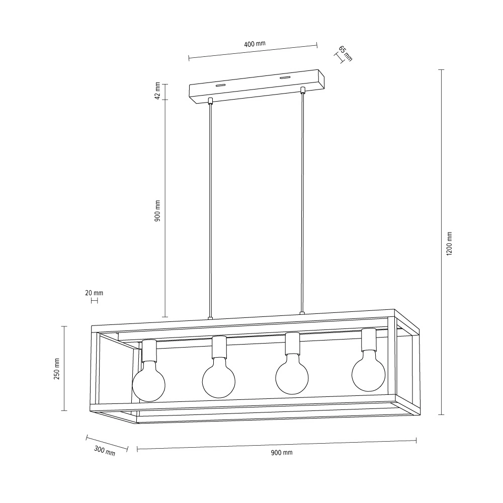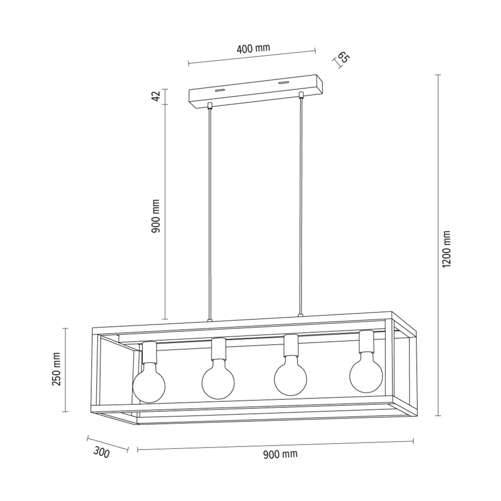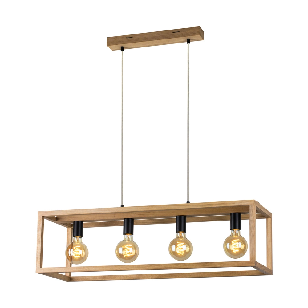 Lampa Wisząca Kago 4xE27 Max.60W Dąb Olejowany/Czarny Metal/Przezroczysty Kabel PCV 61590474