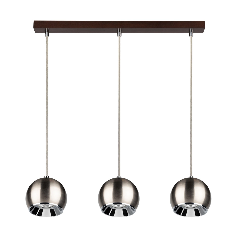 Lampa wisząca z drewna Ball w zestawie 3xLED GU10 5W Drewno bukowe w kolorze orzecha/metal satynowy 5141376