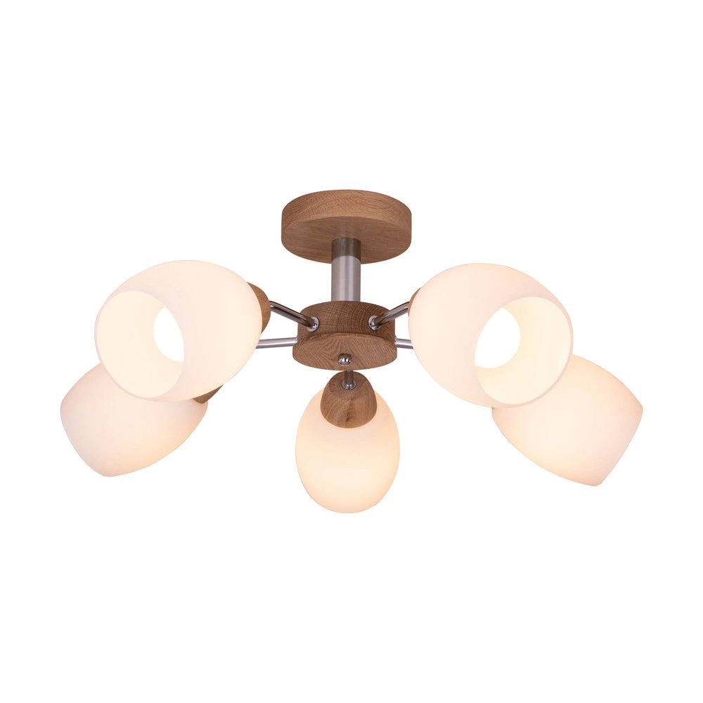 Lampa sufitowa z drewna Parma 5xE27 maks. 60W dąb olejowany/chrom metal/białe szkło 8320574