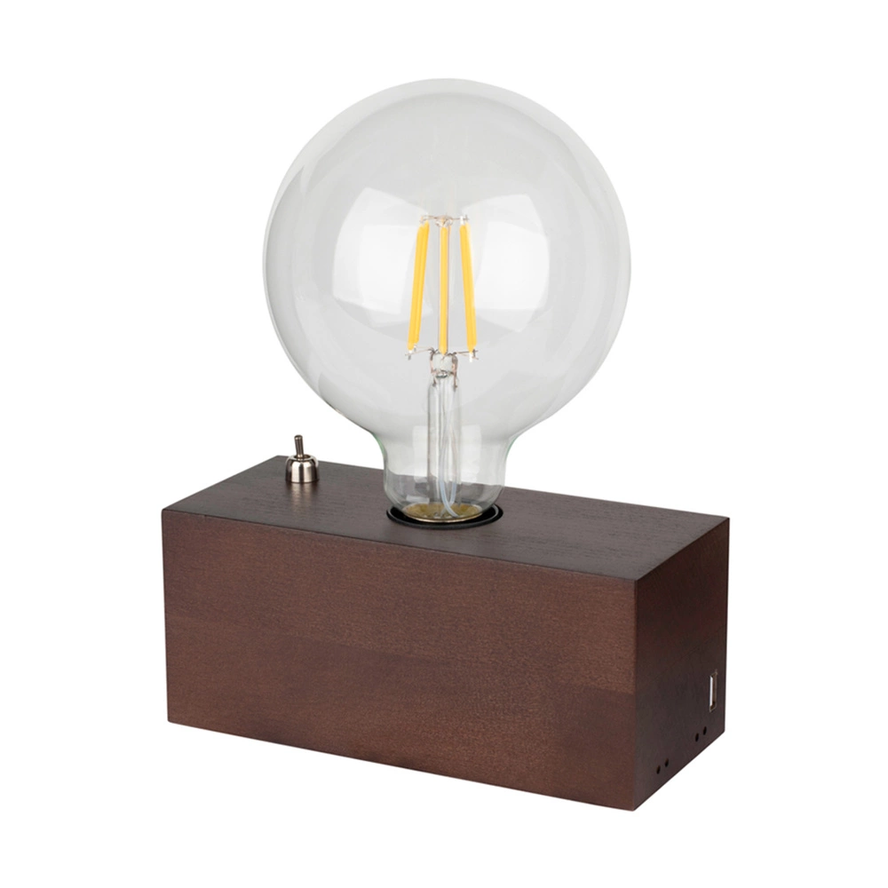 Lampa stołowa Theo 1xE27 maks. 25W drewno bukowe orzechowe/czarny kabel PVC ze zintegrowaną ładowarką USB 7461176