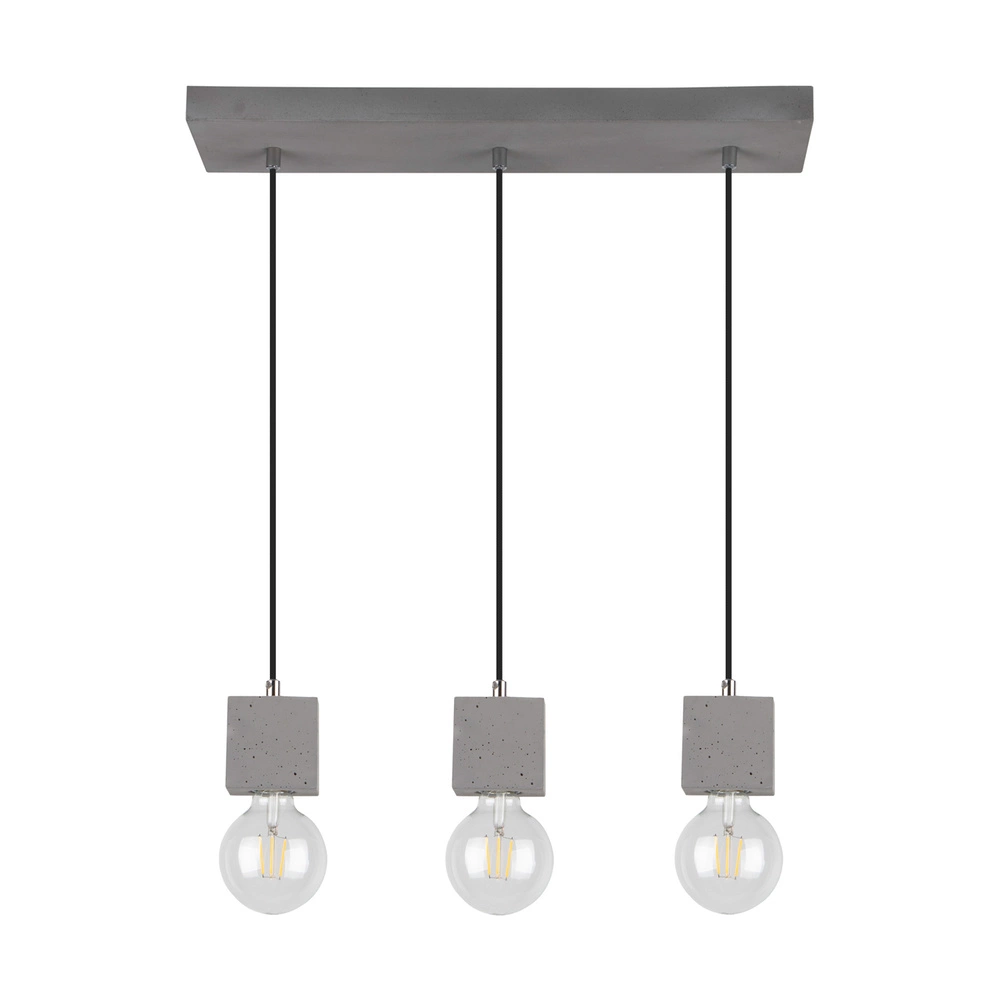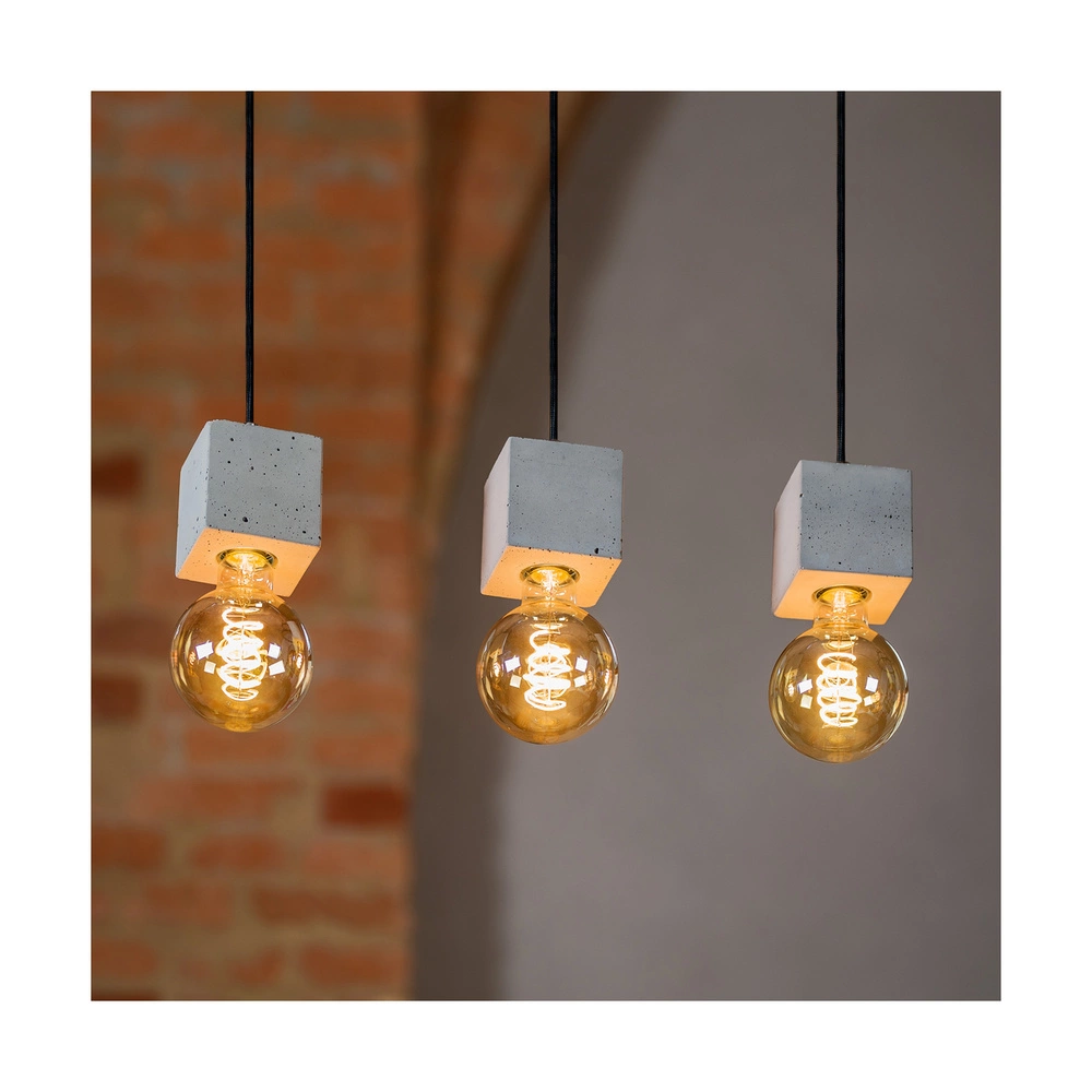 Mocna kwadratowa lampa wisząca 3xE27 Max.60W Szary beton/Czarny kabel z tkaniny 7089336