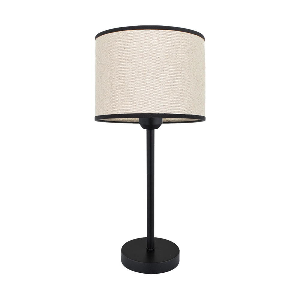 Lampa stołowa Amor 1xE27 maks. 40W Czarny metal/czarny kabel PVC/jasny len z czarnym kloszem wstążkowym 7010408511664