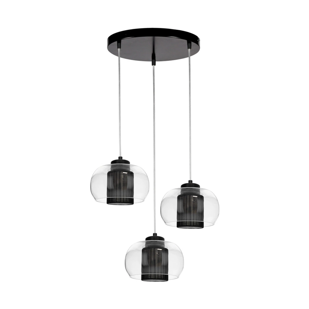 Lampa wisząca Cordia 3xE14 Max.9W Czarny metal/Przezroczysty kabel PVC/Czarny klosz z tkaniny/Szkło przezroczyste 1192334A1028