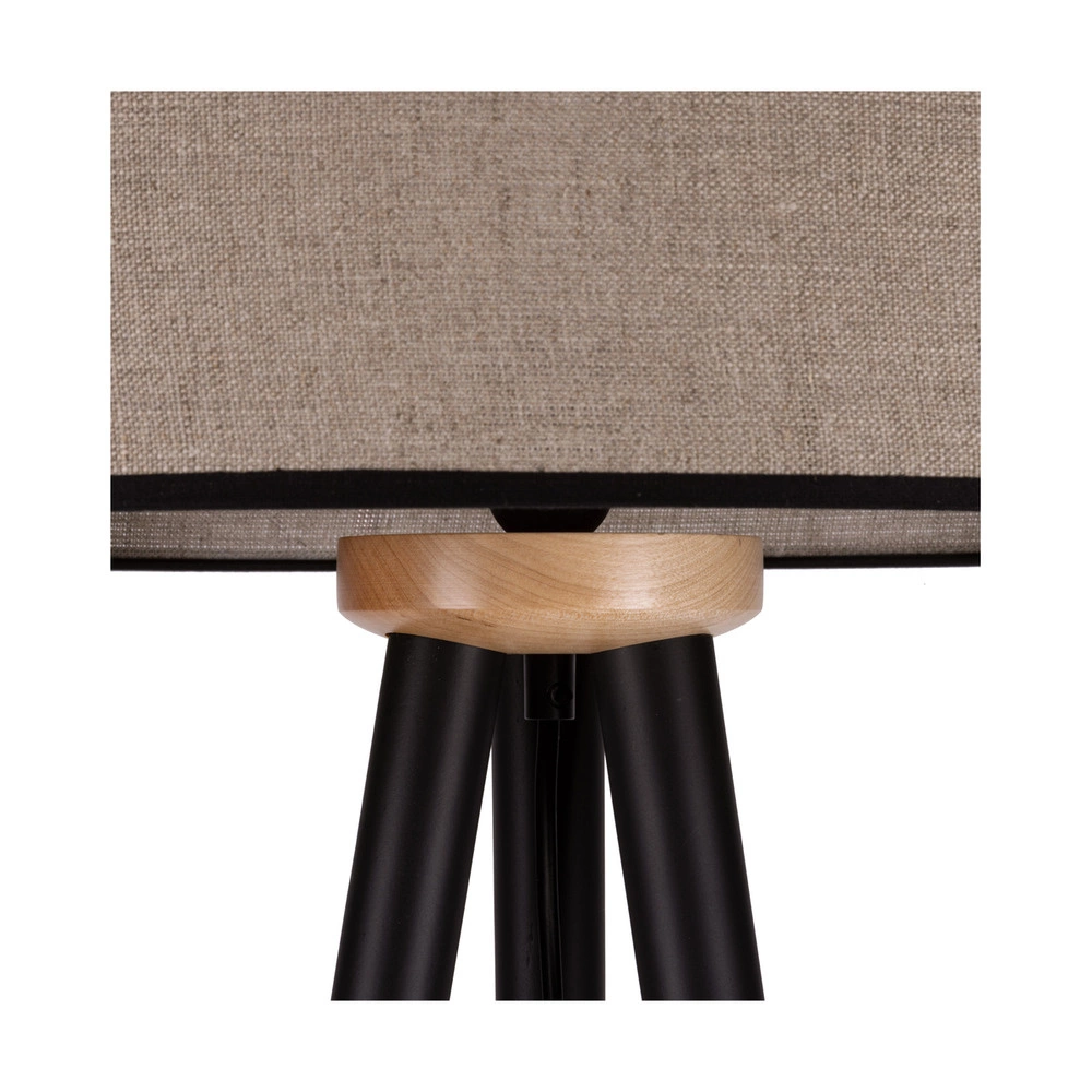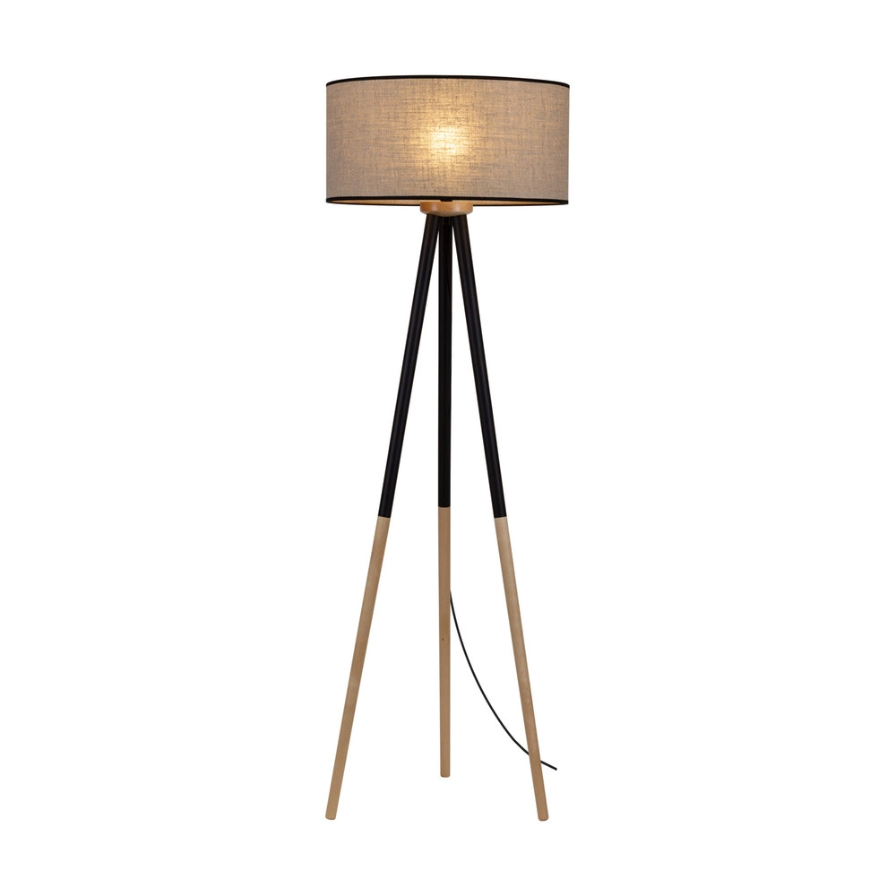 Lampa podłogowa Panda 1xE27 maks. 60W drewno czarno-brzozowe/czarny kabel PVC/naturalny len z czarnym kloszem wstążkowym 6016408310025