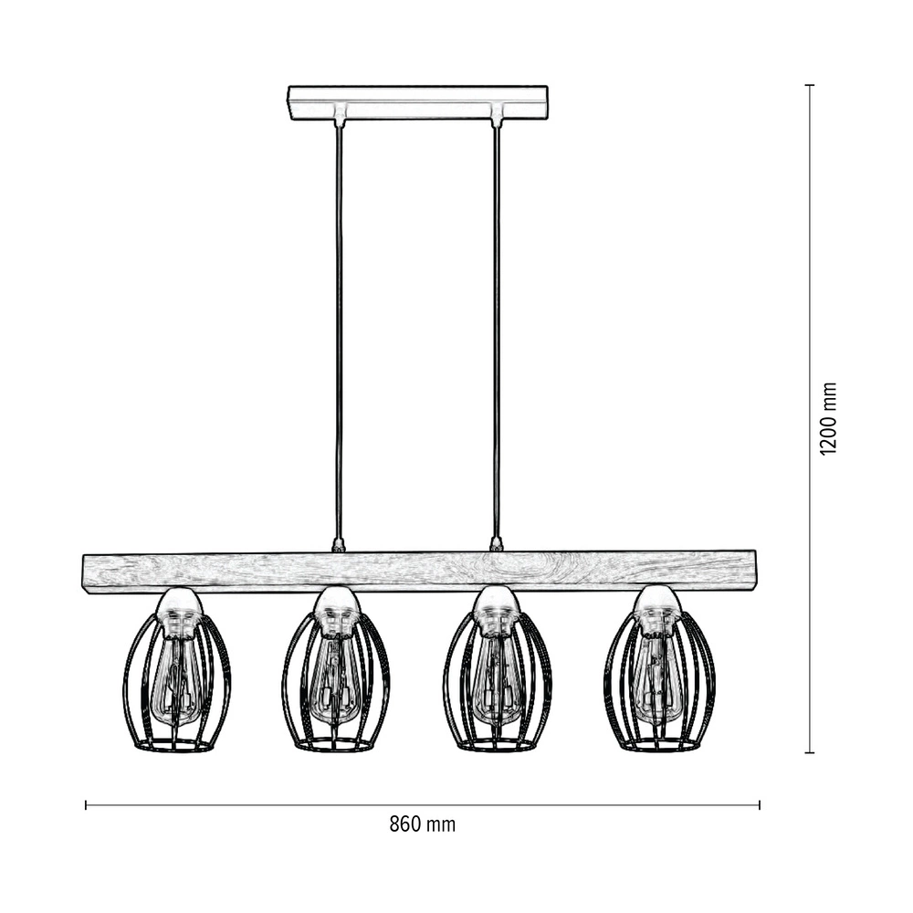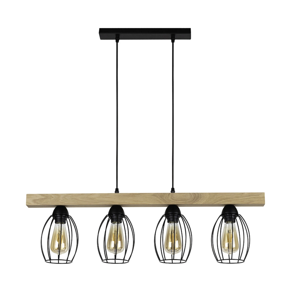 Lampa Wisząca Carlo 4xE27 Max.60W Dąb Olejowany/Czarny Metal/Czarny Kabel PCV 14919404
