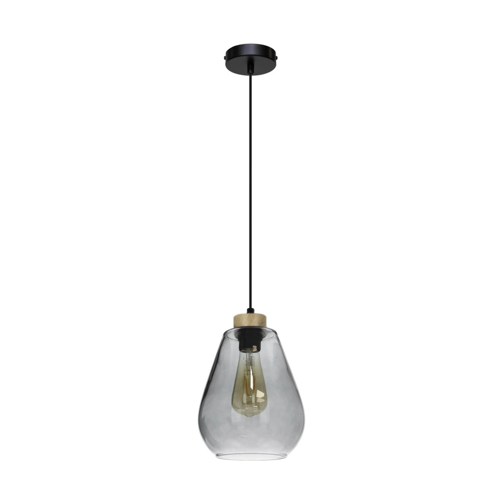 Lampa Wisząca Kigali 1xE27 Max.60W Dąb Olejowany/Czarny Metal/Czarny Kabel PCV/Szkło Dymne 5500063