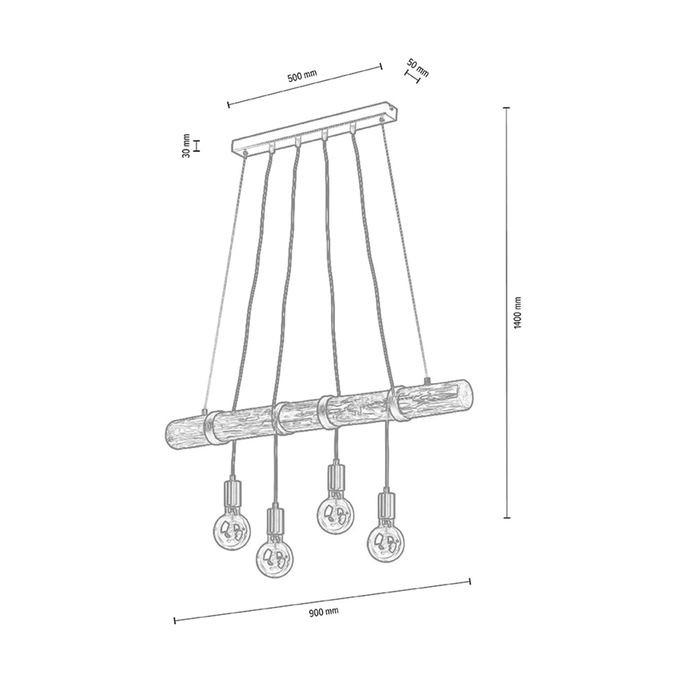Lampa Wisząca Tongo 4xE27 Max.60W Bejcowana Sosna Brązowa/Czarny Metal/Czarny Kabel PCV 69104404