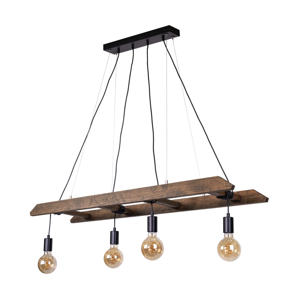 Lampa Wisząca Eskalo 4xE27 Max.60W Bejcowana Sosna na Orzechu/Czarnym Metalu/Czarnym Kablu PCV 7219456