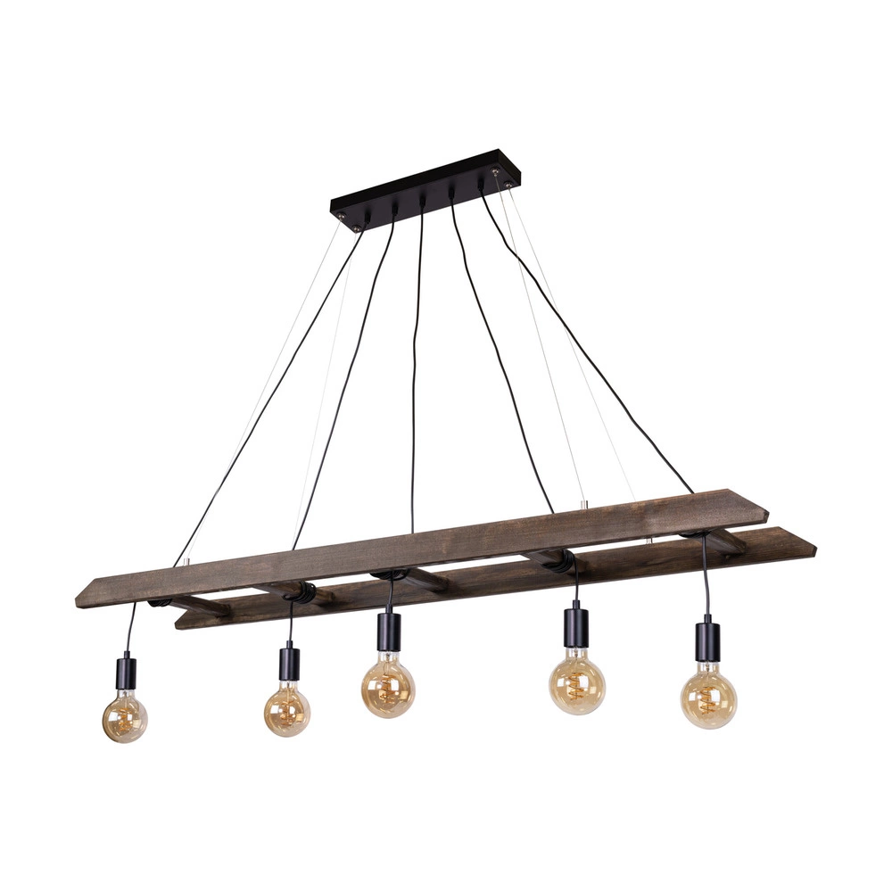 Lampa Wisząca Eskalo 5xE27 Max.60W Bejcowana Sosna na Orzechu/Czarnym Metalu/Czarnym Kablu PCV 7219556