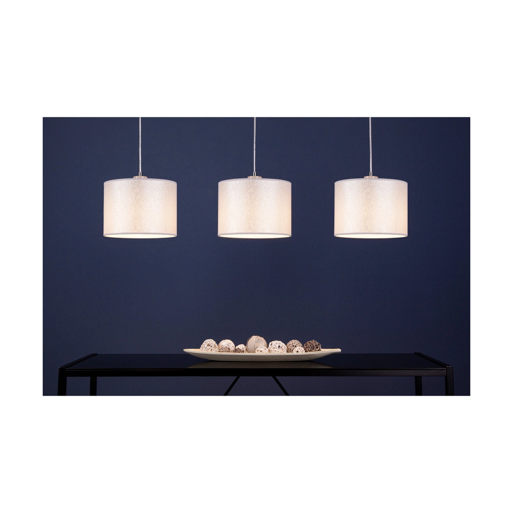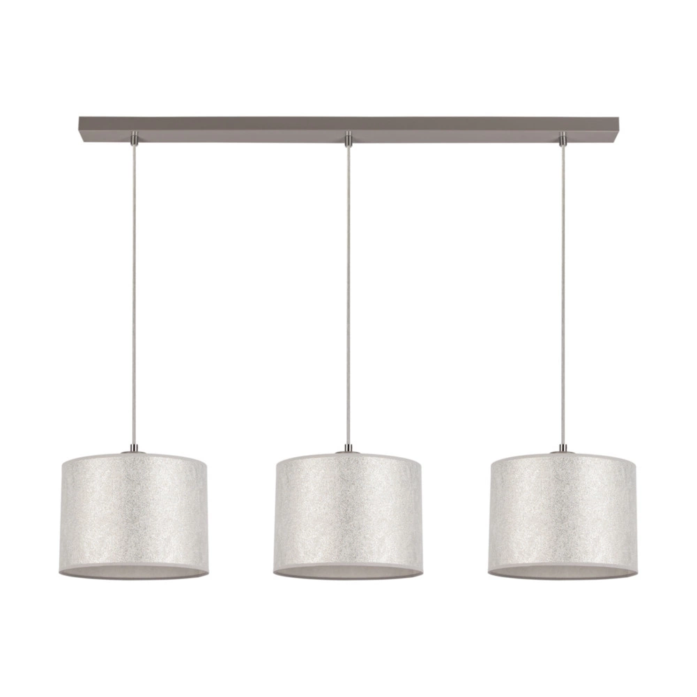 Lampa Wisząca Prata 3xE27 Max.40W Szary Metal/Przezroczysty Kabel PCV/Srebrny Klosz Tkaniny 957280347