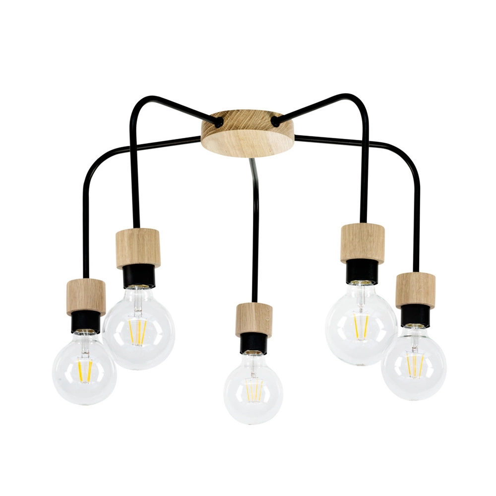 Lampa Sufitowa Eclait 5xE27 Maks. 40W Dąb Olejowany/Czarny Metal 5834574
