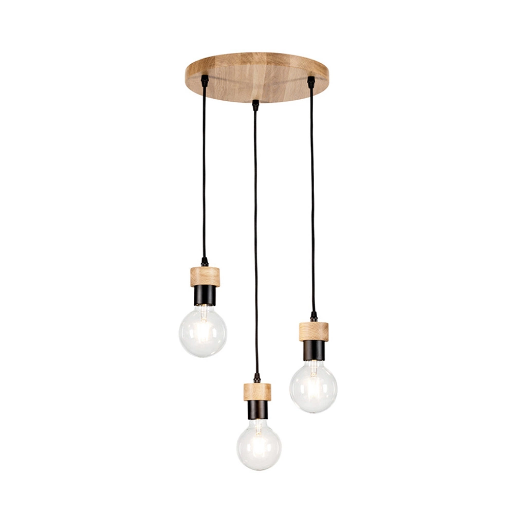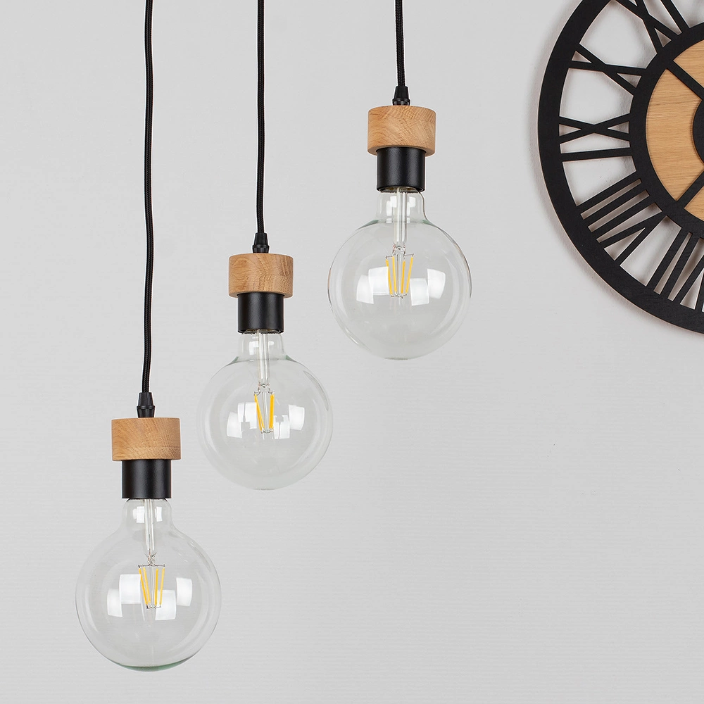 Drewniana lampa wisząca Clarte 3xE27 maks. 60W Dąb olejowany/Czarny metal/Czarny kabel z tkaniny 3274374R