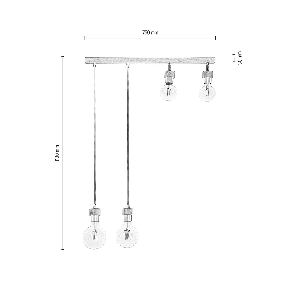 Odkryj innowacyjny projekt lampy wiszącej Clarte Wood, wyposażonej w cztery oprawki E27, dwie żarówki zwisające z czarnego kabla z tkaniny i dwie żarówki przymocowane do olejowanego dębowego paska. Ta wyjątkowa aranżacja oferuje połączenie nowoczesnej elegancji i rustykalnego uroku, idealna do stworzenia dynamicznego rozwiązania oświetleniowego w każdym pomieszczeniu. Połączenie olejowanego dębu i czarnego metalu wraz ze stylowym kablem z czarnej tkaniny sprawia, że ​​lampa ta wyróżnia się zarówno jako element funkcjonalny, jak i dekoracyjny. Ta lampa wisząca charakteryzuje się charakterystyczną konfiguracją z dwiema żarówkami zawieszonymi na kablu i dwiema żarówkami zamontowanymi na listwa dębowa, oferująca nowoczesny i dynamiczny wygląd. Dzięki czterem trzonkom E27 lampa zapewnia kompleksowe oświetlenie, idealne do dużych przestrzeni, takich jak jadalnie, salony czy wyspy kuchenne. Lampa jest dostarczana ze wszystkimi niezbędnymi elementami konstrukcyjnymi oraz przejrzystą instrukcją umożliwiającą proste proces instalacji.Połączenie wiszących i zamontowanych żarówek oraz elementów z naturalnego drewna i metalu nadaje przytulną i wyrafinowaną atmosferę każdemu pomieszczeniu. Lampa ta oferuje praktyczne rozwiązania oświetleniowe, a jednocześnie służy jako dekoracyjny element centralny, poprawiając atrakcyjność wizualną Twojego przestrzeni.Regulowana długość kabla pozwala dostosować położenie wiszących żarówek tak, aby idealnie pasowały do ​​Twojej przestrzeni, zapewniając optymalne oświetlenie i estetykę.