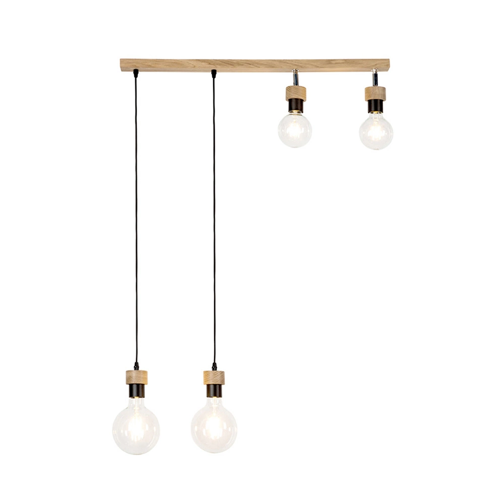 Drewniana lampa wisząca Clarte 4xE27 maks. 60W Dąb olejowany/Czarny metal/Czarny kabel z tkaniny 32749474