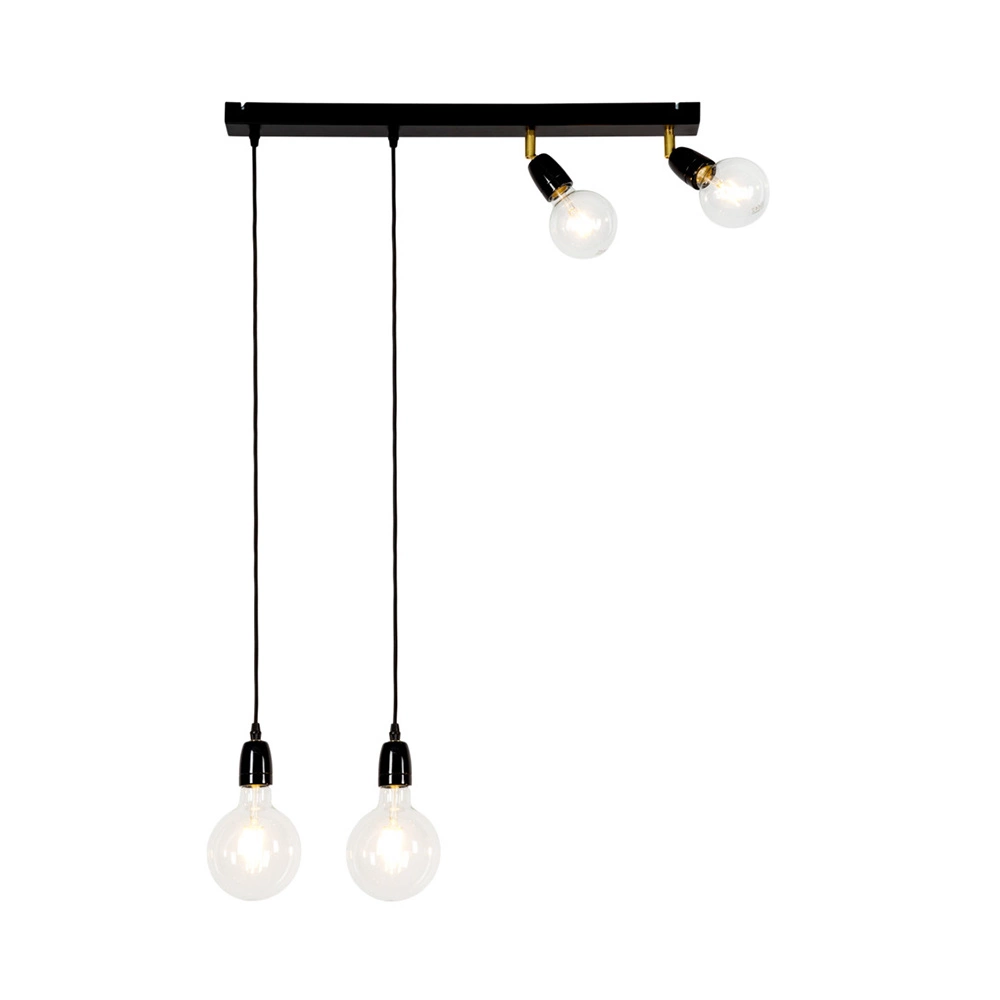 Lampa Sufitowa Porcia 4xE27 Max.25W Czarny Metal/Złoty Metal/Czarna Ceramika/Czarny Kabel Tkaninowy 81279404