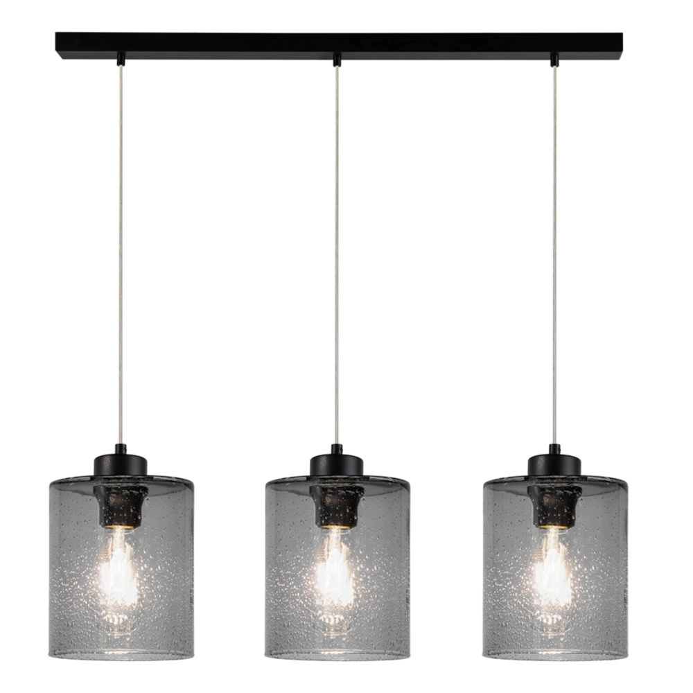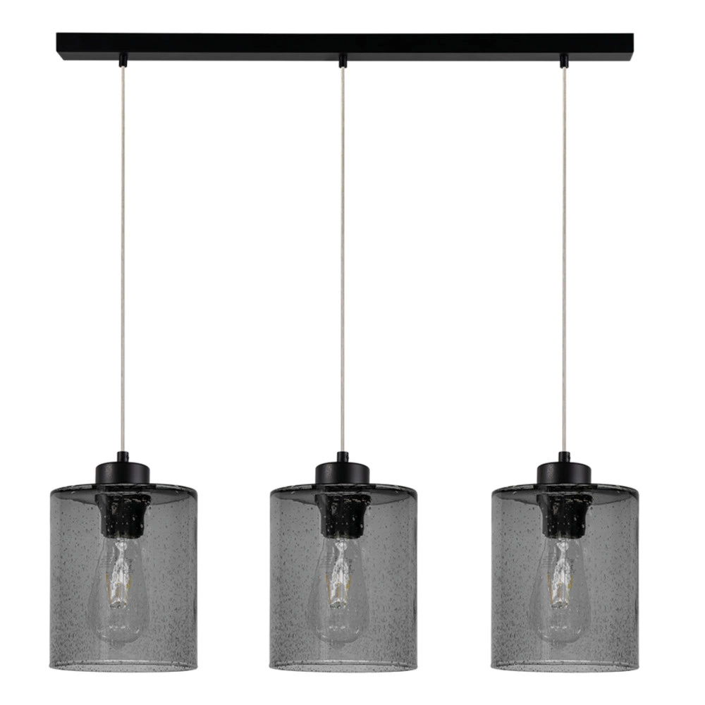Lampa wisząca Zefir z trzema źródłami światła z czarnego metalu i przydymionego szkła to efektowne połączenie nowoczesnego designu i praktycznego oświetlenia. Wyposażona w trzy gniazda E27, każde obsługujące żarówki o mocy do 60 W, lampa ta zapewnia wystarczające oświetlenie, dzięki czemu idealnie nadaje się do większych przestrzeni wymagających skutecznego oświetlenia. Czarna metalowa rama zapewnia elegancki, nowoczesny wygląd, a przyciemniane szklane klosze delikatnie rozpraszają światło, tworząc ciepłą i zachęcającą atmosferę. Przezroczysty kabel PVC zachowuje minimalistyczną estetykę, dzięki czemu lampa idealnie komponuje się z różnymi stylami wystroju. Niezależnie od tego, czy zainstalowana jest w jadalni, kuchni czy salonie, lampa wisząca Zefir zapewnia zarówno funkcjonalność, jak i wyrafinowany wygląd, dzięki czemu będzie wyjątkowym dodatkiem do Twojego domu.