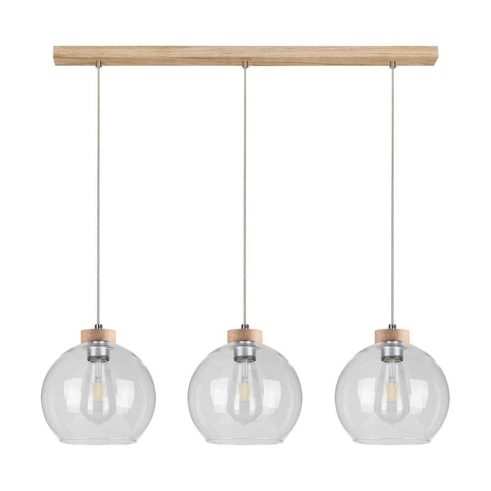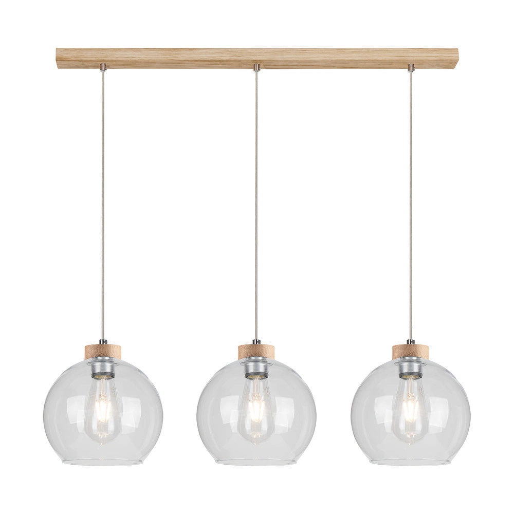 Lampa Wisząca Laguna Wood 3xE27 Max.60W Dąb Olejowany/Przezroczysty Kabel PCV/Przezroczyste Szkło 18710374