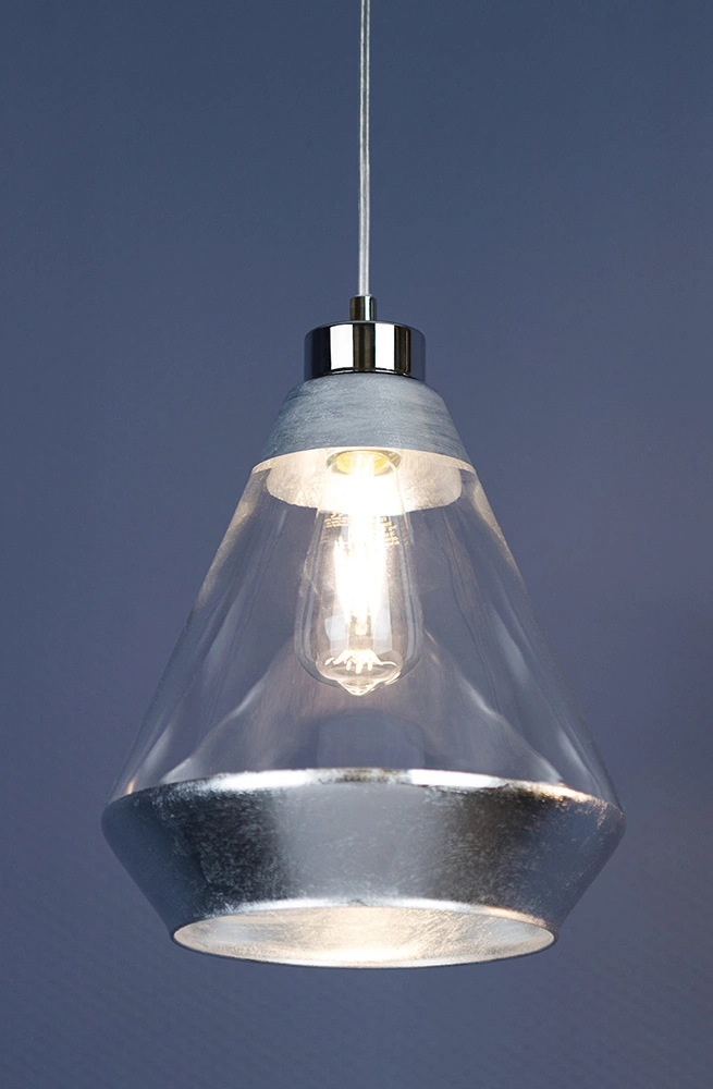 Lampa Wisząca Mistral 1xE27 Max.60W Chrom Metal/Przezroczysty Kabel PCV/Srebrno-Przezroczyste Szkło 15840128