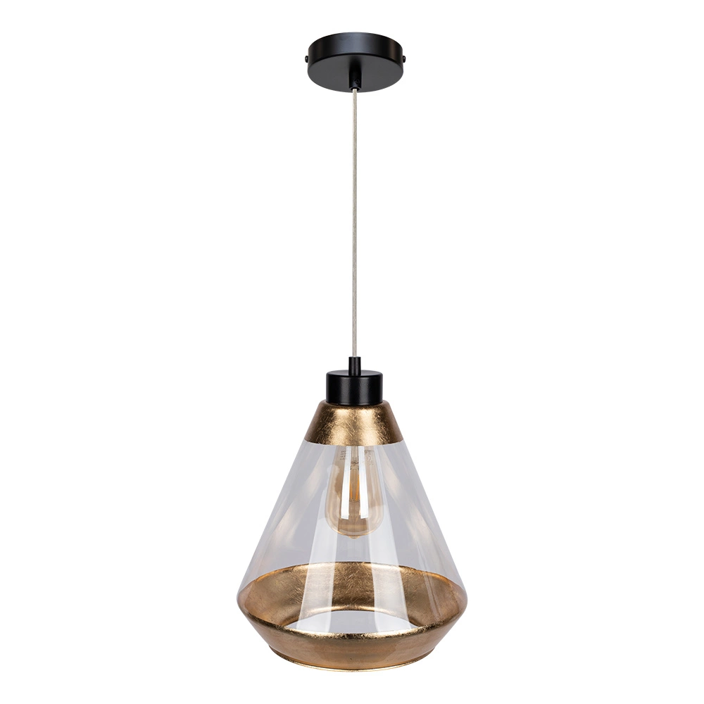 Lampa Wisząca Mistral 1xE27 Max.60W Czarny Metal/Przezroczysty Kabel PCV/Złote-Przezroczyste Szkło 15820104