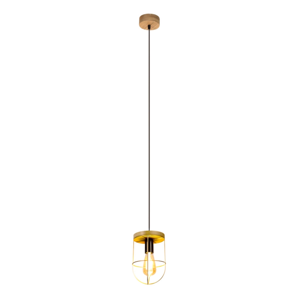 Lampa Wisząca Netuno 1xE27 Max.60W Bejcowana Sosna Brązowa/Czarny Metal/Czarny Kabel PCV/Złoty Metal 1811059151