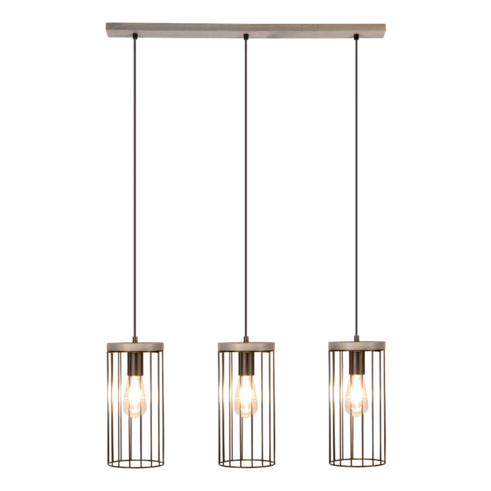 Lampa Wisząca Timeo 3xE27 Max.60W Bejcowana Sosna Szara/Czarny Kabel PCV/Czarny Metal 195109357