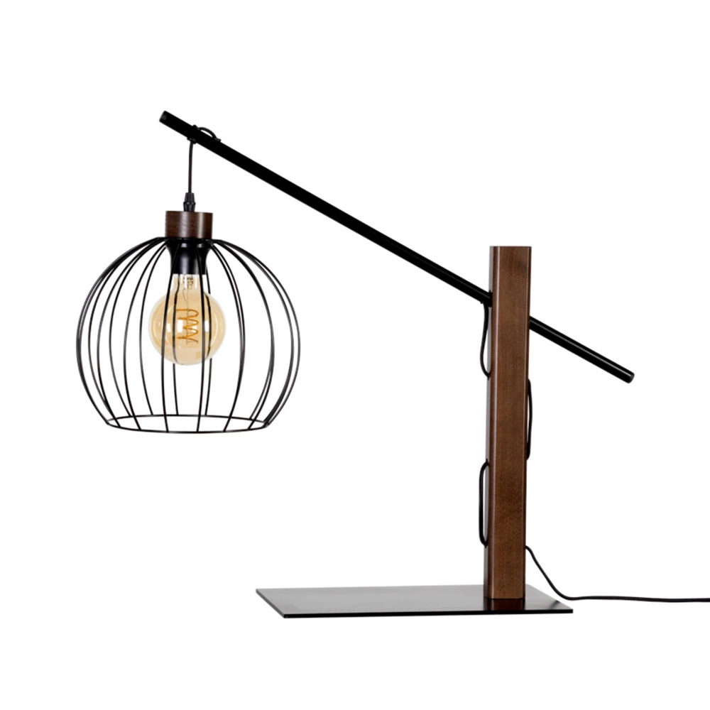 Lampa stołowa Mandarine 1xE27 maks. 60W drewno bukowe orzechowe/czarny metal/czarna tkanina kabel 85034904
