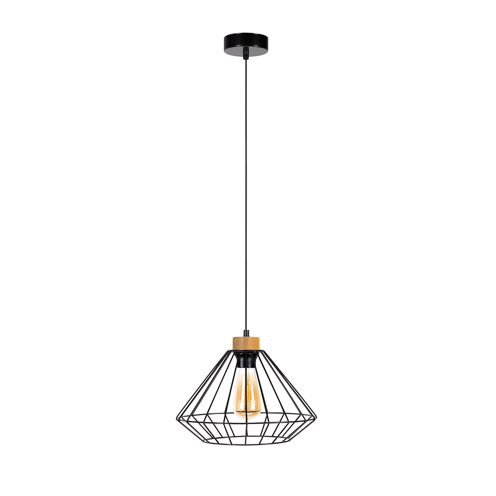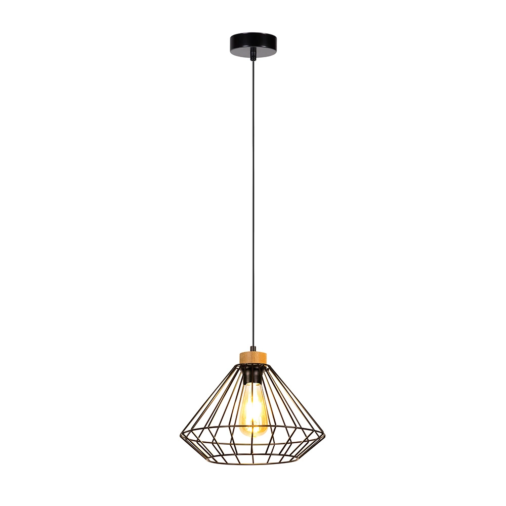 Lampa wisząca Raquelle 1xE27 maks. 60W Dąb olejowany/Czarny metal/Czarny kabel PCV 187119104