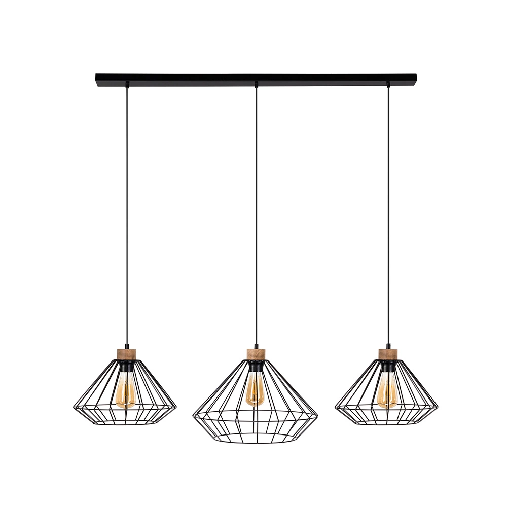 Lampa wisząca Raquelle 3xE27 maks. 60W Dąb olejowany/Czarny metal/Czarny kabel PCV 187319304