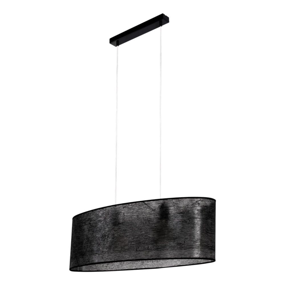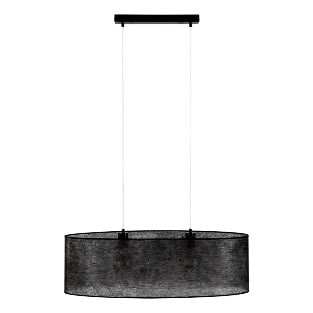 Lampa Wisząca Nevoa 2xE27 Max.40W Czarny Metal/Przezroczysty Kabel PCV/Klosz z Czarnej Tkaniny 17920204