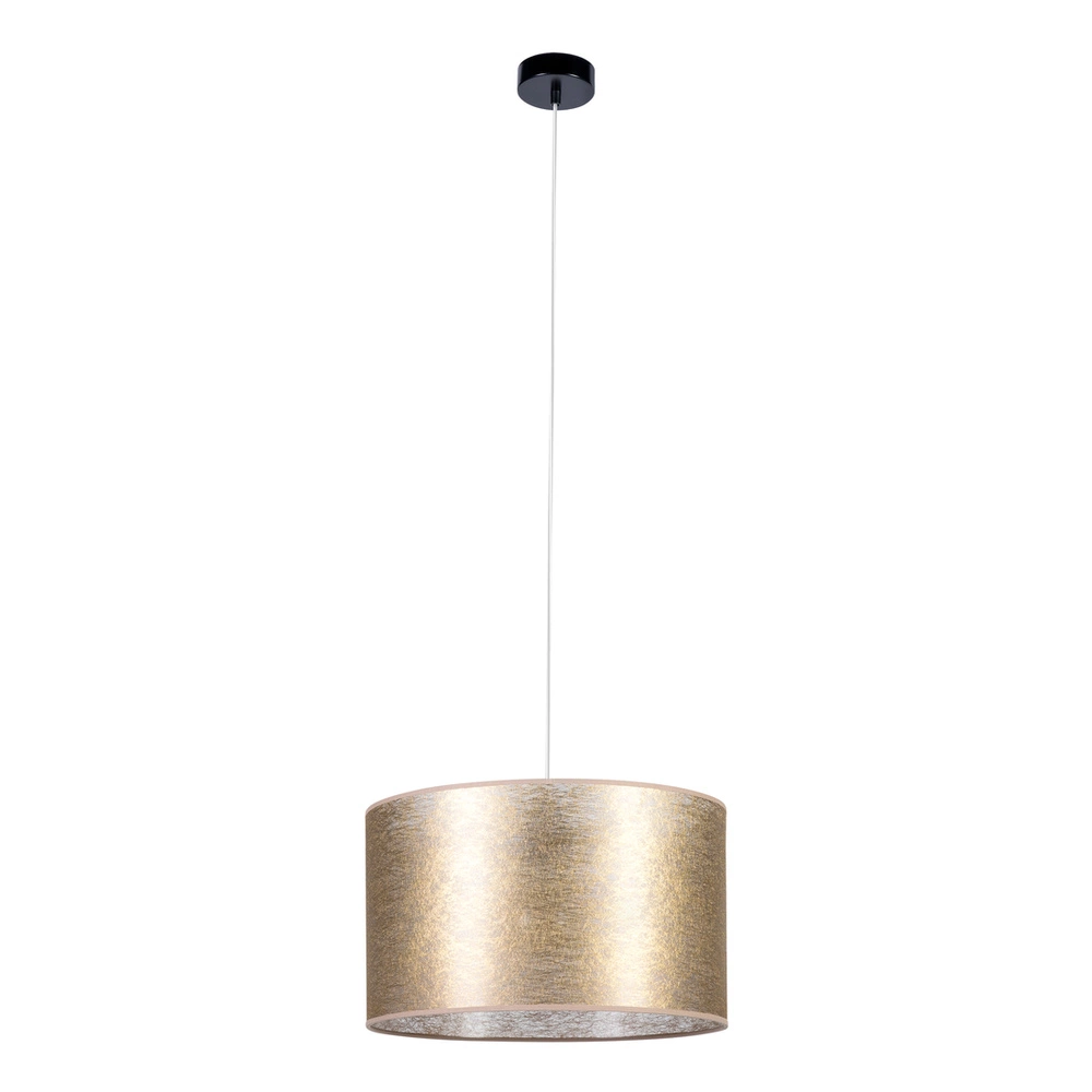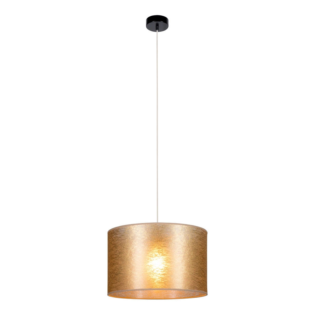 Lampa Wisząca Nevoa 1xE27 Maks. 60W Czarny Metal/Przezroczysty Kabel PCV/Klosz ze Złotej Tkaniny 154940104