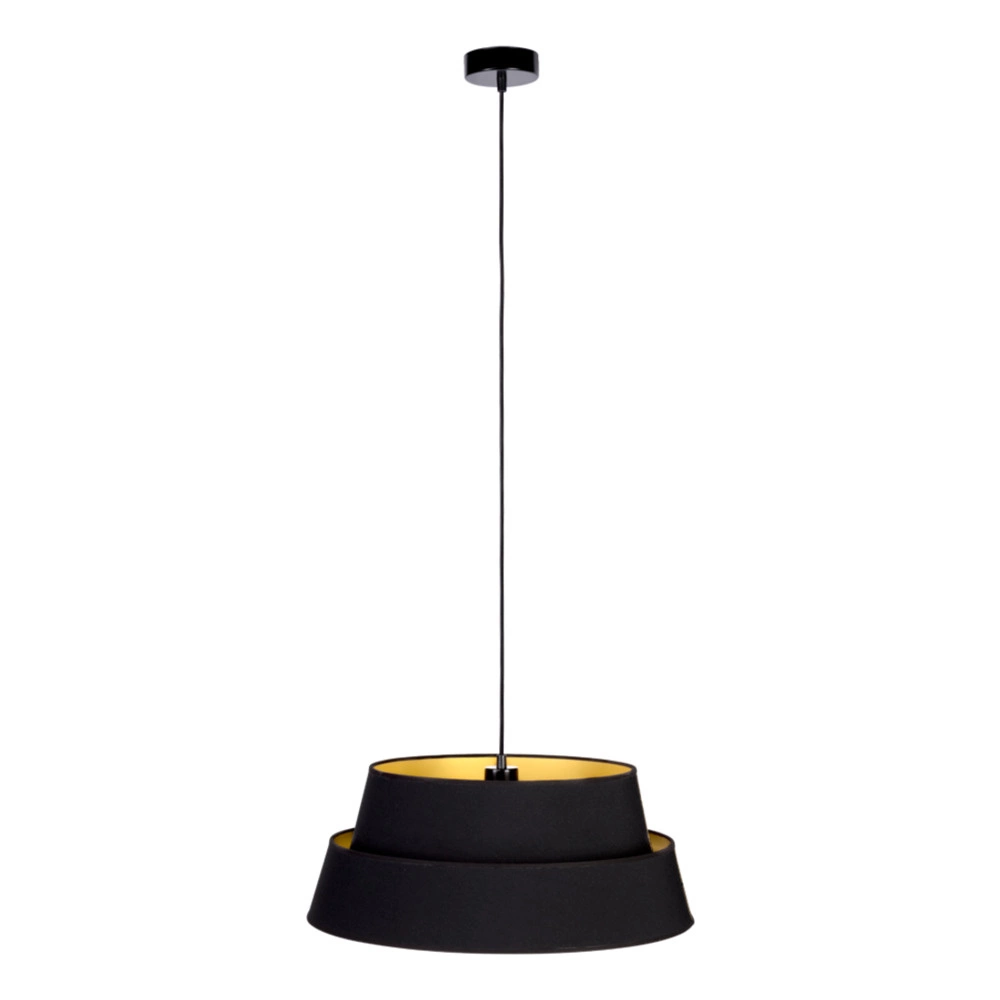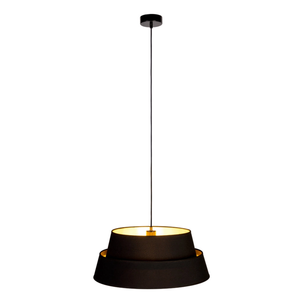 Złota lampa wisząca Preto 1xE27 Max.60W Czarny metal/Czarny kabel z tkaniny/Czarno-złoty klosz z tkaniny 150019104