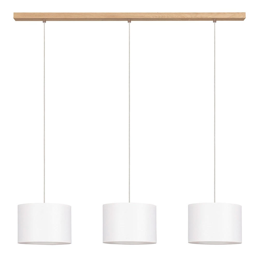 Lampa Wisząca Dove 3xE27 Max.40W Dąb Olejowany/Przezroczysty Kabel PCV/Abażur z Białej Tkaniny 16380374