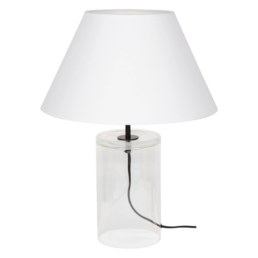 Lampa stołowa Dove 1xE27 maks. 40W przezroczyste szkło/czarny kabel z tkaniny/biały klosz z tkaniny 779129110