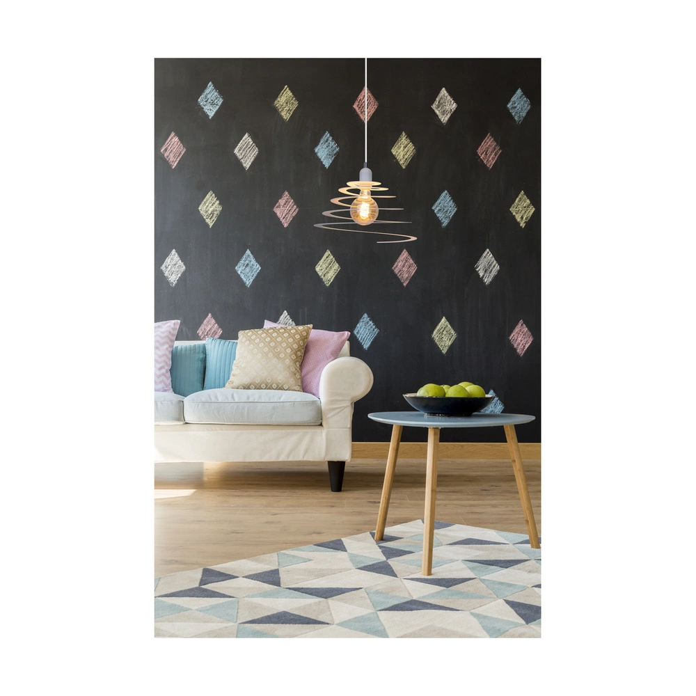 Wprowadź odrobinę elegancji dzięki lampie wiszącej Komet z chromowanego i białego metalu. Ta lampa wisząca charakteryzuje się wyrafinowanym designem dzięki połączeniu błyszczącego chromu i czystego białego metalu, co czyni ją wyróżniającym się elementem nowoczesnych i minimalistycznych wnętrz. Lampa mieści żarówkę E27 (maks. 60 W) i jest wykończona białym przewodem PCV, co zapewnia spójny i stylowy wygląd. Idealny do rozjaśniania jadalni, kuchni lub dowolnego obszaru wymagającego eleganckiej, współczesnej aktualizacji.