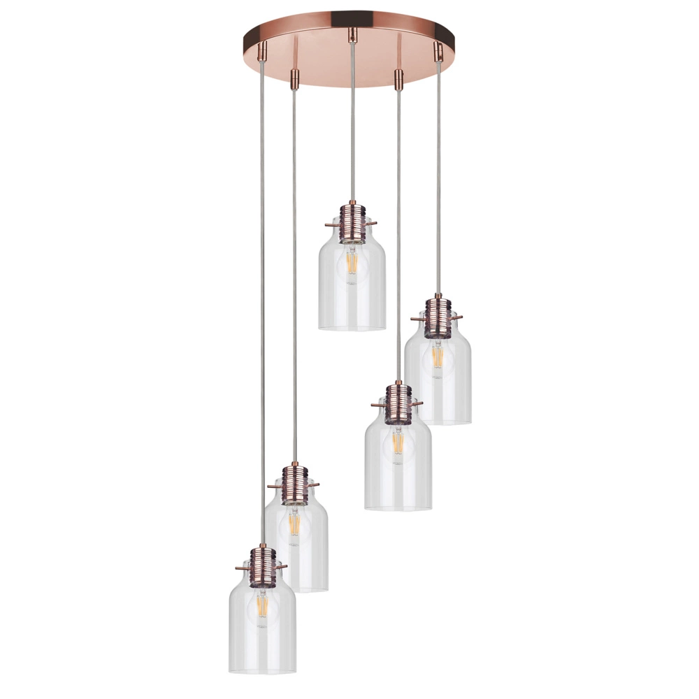 Lampa Wisząca Alessandro 5xE27 Max.60W Miedź Metal/Przezroczysty Kabel PCV/Przezroczyste Szkło 1760513