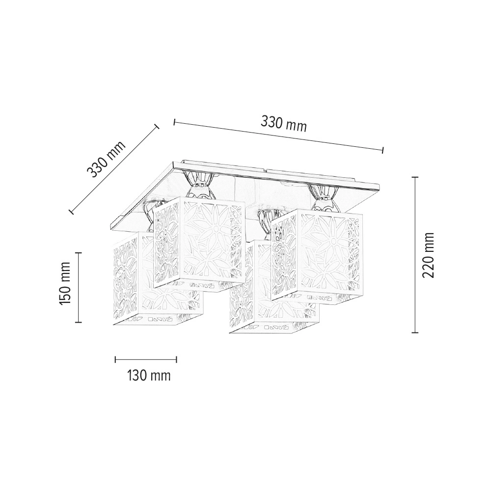 Przedstawiamy lampę sufitową Anika, elegancką i stylową oprawę zaprojektowaną, aby rozjaśnić Twoją przestrzeń w wyrafinowany sposób. Ta lampa sufitowa z chromowaną metalową podstawą i białymi szklanymi kloszami mieści cztery żarówki E27, zapewniając mocne i równomierne oświetlenie. Idealna do większych pomieszczeń, takich jak jadalnie czy salony, lampa sufitowa Anika łączy w sobie funkcjonalność z nowoczesną estetyką, dzięki czemu jest wszechstronnym dodatkiem do Twojego domu.