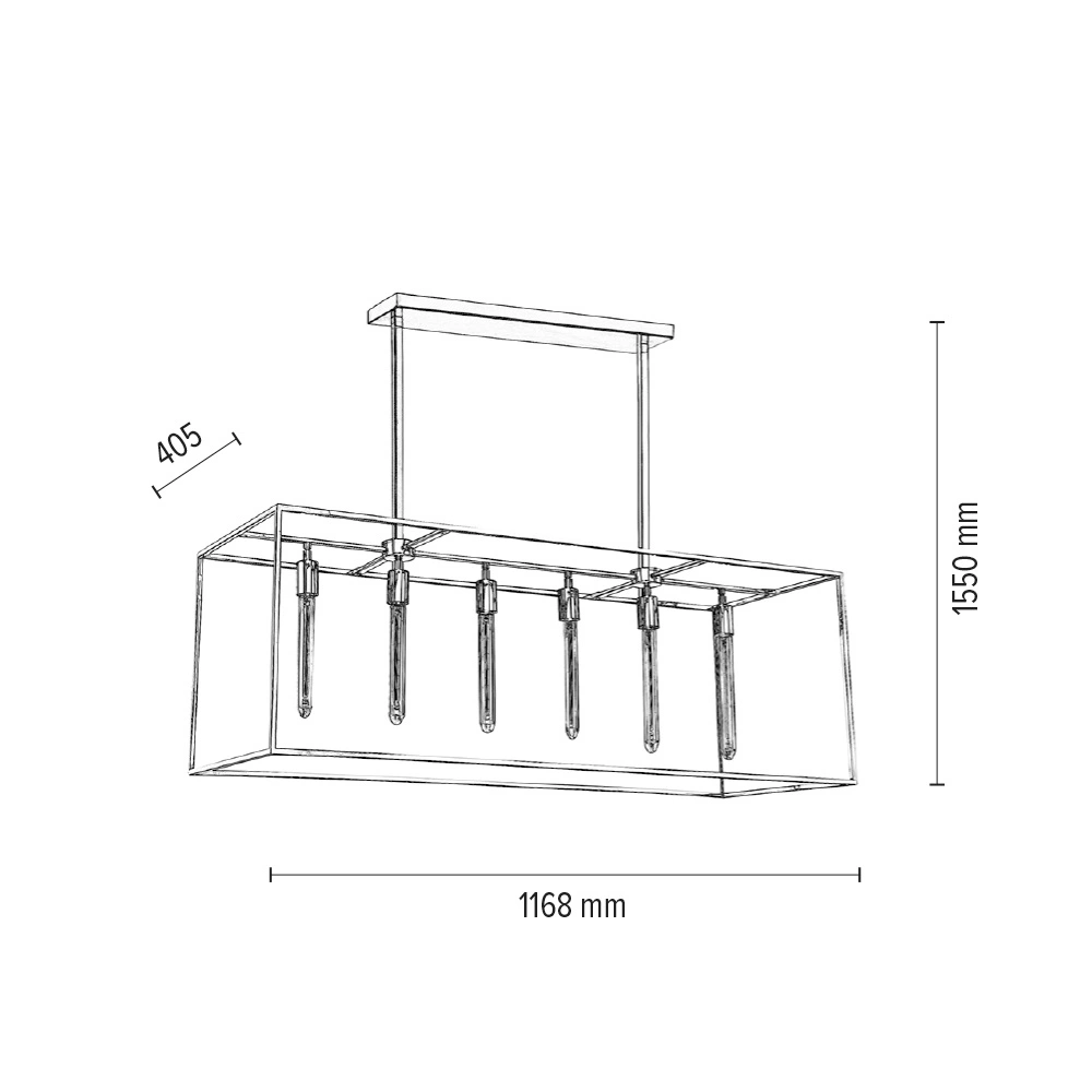 Lampa wisząca Telaio ma elegancką chromowaną metalową ramę w połączeniu z przezroczystym szkłem, oferując nowoczesne i wyrafinowane rozwiązanie oświetleniowe. Dzięki 6 gniazdom E27 o mocy do 60 W każde, lampa ta zapewnia wystarczające oświetlenie i stylowy punkt centralny, idealny do jadalni lub dużych pomieszczeń mieszkalnych.