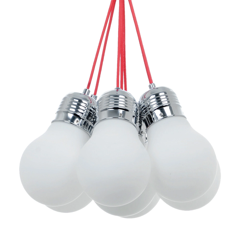 Zrób odważne oświadczenie dzięki lampie wiszącej Bulb, wyposażonej w siedem kloszy z białego szkła i elegancką chromowaną metalową ramę, a wszystko to zawieszone na żywych kablach z czerwonej tkaniny. Zaprojektowany, aby pomieścić siedem żarówek E27 o mocy do 60 W, ten dynamiczny element oświetleniowy idealnie nadaje się do dodania odrobiny nowoczesnej elegancji i żywych kolorów do każdego pomieszczenia.